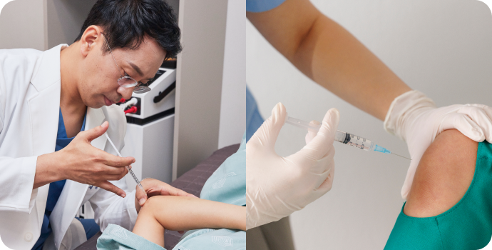 주사액을 주입하여 인대 증식을 돕는 프롤로 테라피