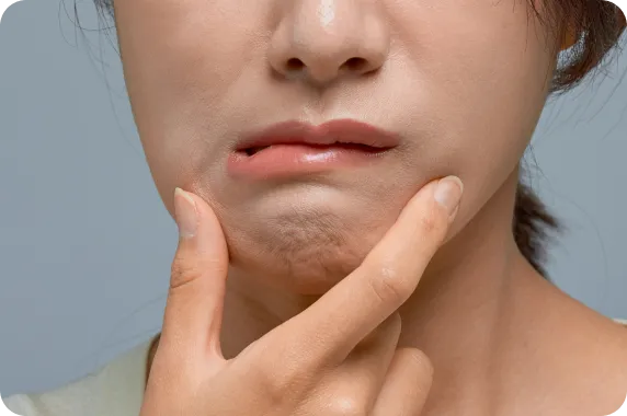 힘이 들어가지 않아 비뚤어지는 증상이 나타납니다.
