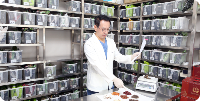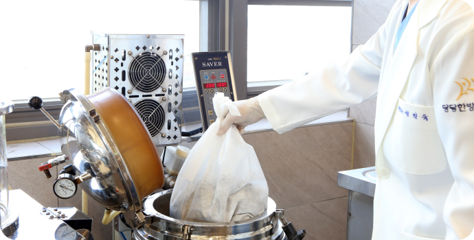약재의 검수 및 조제 및 탕전, 포장, 배송까지 전과정을 직접 관리하며, 환자 한 분 한 분 모두 최고의 효과를 볼 수 있도록 원내 탕전실을 운영하여 탕전 오류를 최소화했습니다.