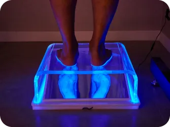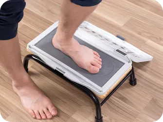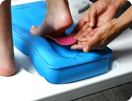 폼 박스를 이용한 족문 프린팅 방식은 정확한 아치 높이 측정이 불가하고 본 뜨는 과정에서 발 아치가 무너지거나 후족부 정렬이 틀어질 수 있어 정확한 발의 형태를 얻기 어렵습니다.