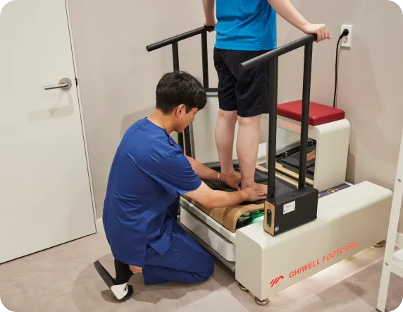 발의 아치와 발목 관절을 제자리로 교정합니다.