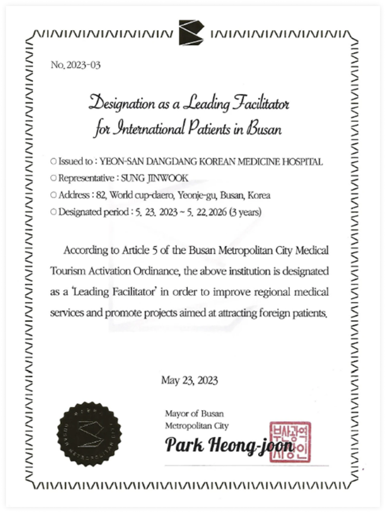 부산시 외국인 환자 유치 선도의료기관 지정