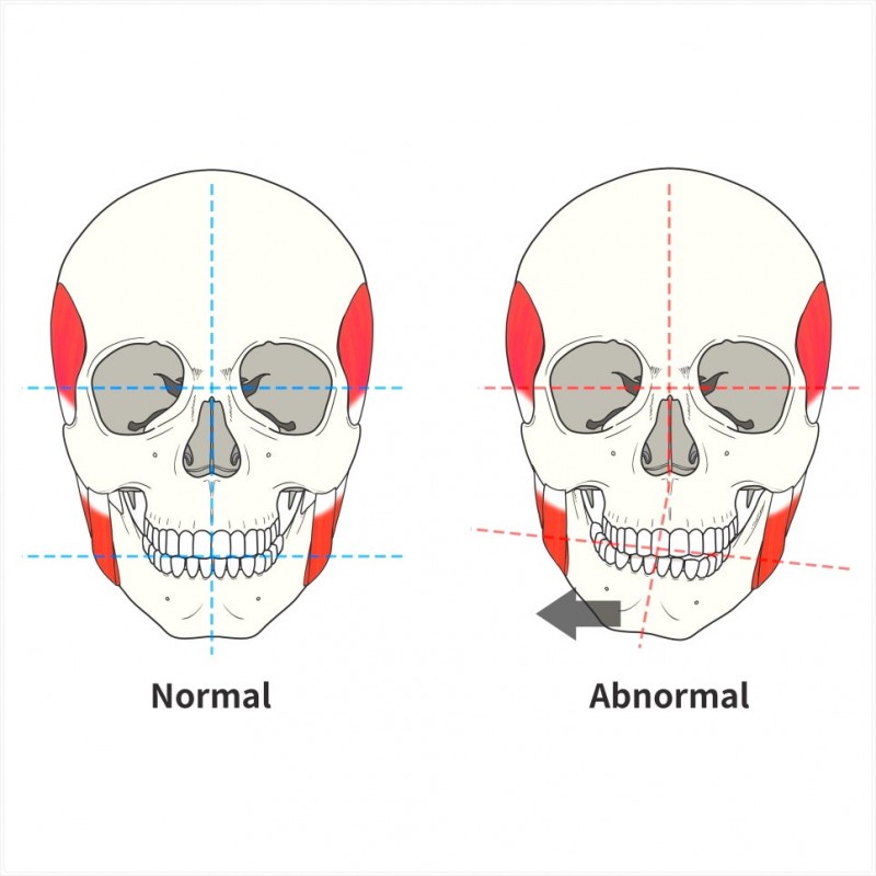 그 결과 턱이 한쪽으로 밀리거나 광대 한쪽이 도드라져 보일 수 있습니다.