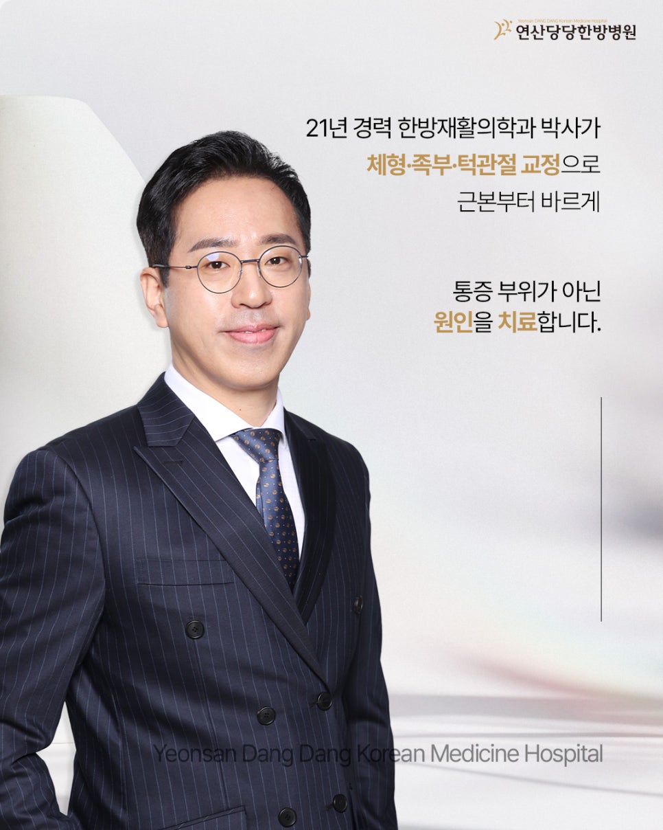 안녕하세요.저는 통증의 단순한 증상만 보는 것이 아니라, 그 원인까지 살펴 근본적인 치료를 진행하는 연산당당한방병원 병원장..