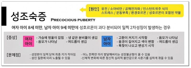 즉, 초반에는 급성장이 나타나지만 성장 시기가 짧아져 최종 키가 작아질 가능성이 높아질 수 있습니다.