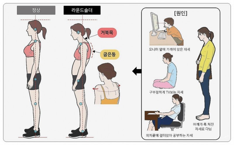 라운드숄더는 현대인에게 흔한 체형 문제지만,