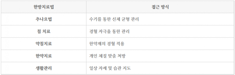 한방통합치료는 침, 약침, 추나요법, 한약 등