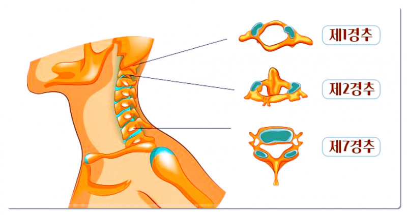 경추, 즉 목뼈는 원래 완만한 C자 곡선을 가지고 있습니다.