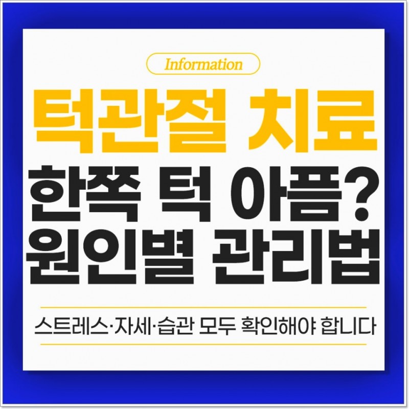 그래서 오늘은 한쪽 턱에 통증이 있는 분들을 위해 스트레스, 자세, 습관 원인별 관리법을 소개해 드리려 합니다.