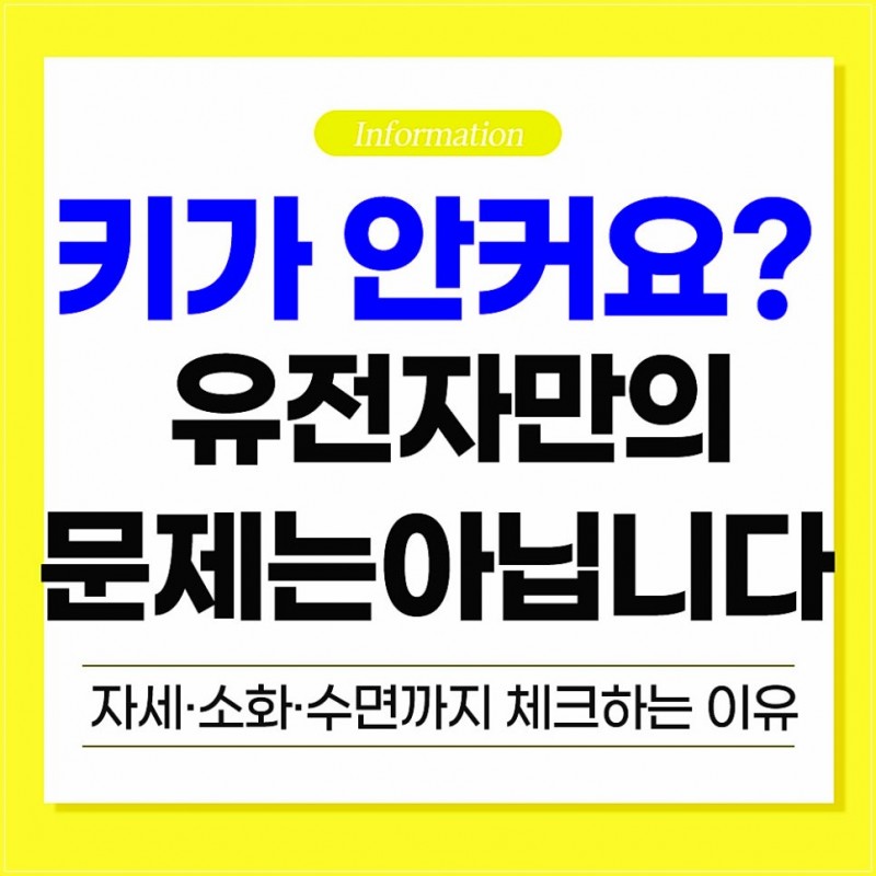 단순히 "우리 아이 키가 안 커요"라고 고민만 하지 마시고, 아이에게 맞는 체계적인 접근을 통해 성장의 가능성을 하나씩 찾아가 보시길 권해드립니다.