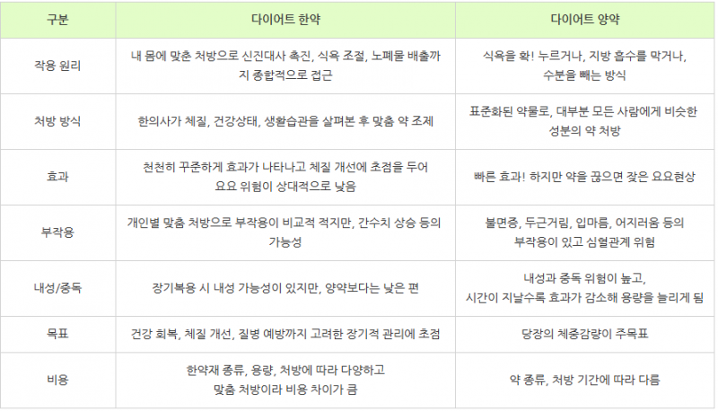 즉각적인 변화가 필요하다면 양약, 지속 가능하고 건강한 다이어트를 원하신다면 한약이 더 적합할 수 있어요.