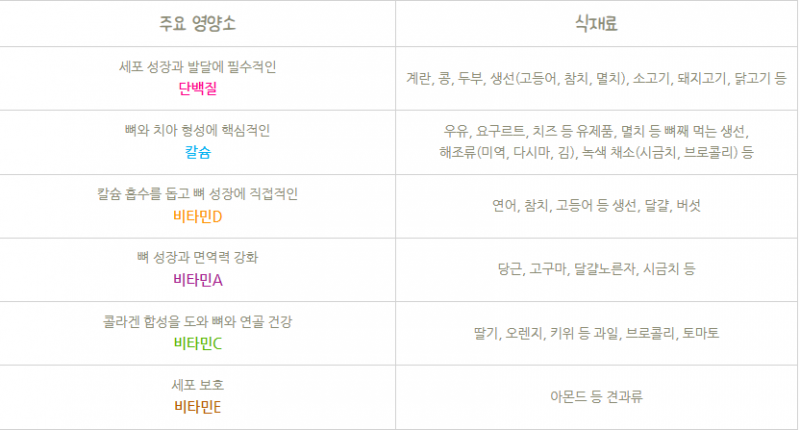 성장기 아이들에게는 뼈와 근육 발달을 돕는 다양한 영양소가 필요합니다.