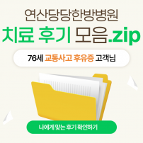 (입원)40세 좌골신경통 고객님Q. 연산당당한방병원을 찾아오시게 된 동기는 무엇입니까?골반틀어짐으로 보행이 되지 않아 치료..